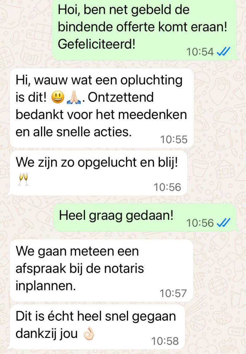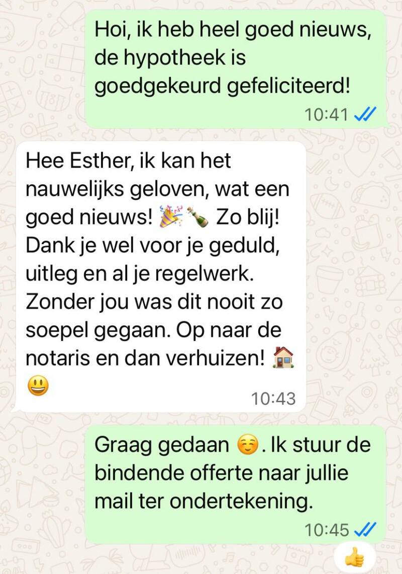 Als ik over een tijd een nieuw huis wil kopen neem ik zeker weer contact op met Esther."